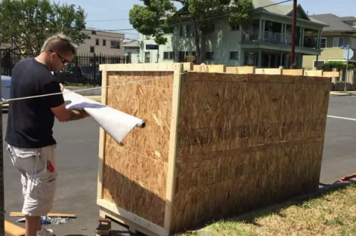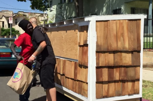 據英國《鏡報》報道,美國洛杉磯男子埃爾維斯(Elvis)利用廢棄材料為60歲的無家可歸者斯莫奇(Smokie)建造了一間迷你屋,從此改變了斯莫奇的生活。