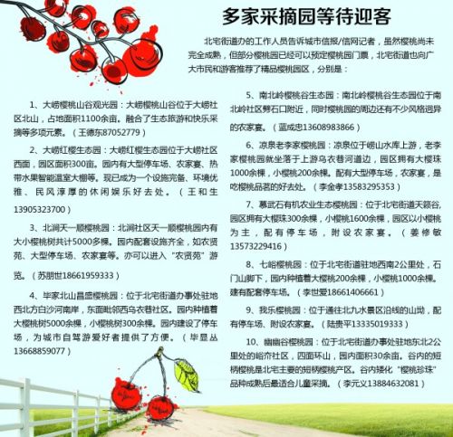 城市信報/信網記者了解到,每年這個時候,市場上都有打著北宅櫻桃旗號的櫻桃上市,北宅街道辦的工作人員介紹說,當下這個時候市面上銷售的櫻桃,可以說全部都是來自外地的大棚貨,并不是真正的北宅櫻桃。“咱們北宅這邊沒有使用大棚種櫻桃的,所以成熟比較晚,但是萊西和平度那邊平地多,種櫻桃都用大棚,上市快,所以現在看上去又大又紅的櫻桃,十有八九是大棚里的。”工作人員告訴城市信報/信網記者,按照以往的經驗,每年櫻桃節是北宅本地櫻桃大量上市的時候,基本上在5月的中下旬。今年第一批櫻桃大量上市估計在5月10日左右,如果是想嘗鮮的市民,五一節期間就可以來北宅吃櫻桃。