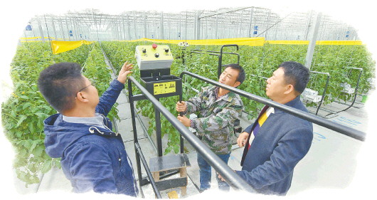 幾位村民在聊城市茌平區(qū)耿店村的現(xiàn)代化玻璃溫室內(nèi)試用現(xiàn)代化采摘設(shè)備。近年來,許多在外打工的年輕村民回鄉(xiāng)建棚種菜,當(dāng)起了“棚二代”,他們帶來新思想、新業(yè)態(tài)、新技術(shù),成為耿店村發(fā)展振興的主力軍。(新華社發(fā))