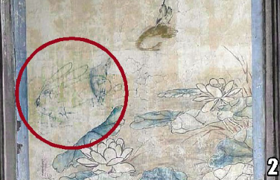 記者看到,7幅畫均有不同程度的刻畫痕跡。如一幅鷹立山間的圖上,刻著“江南第一刀”、“某某到此一游”的字樣。另一幅荷花圖中,被畫上了一只正在奔跑的兔子。而在一幅仕女圖中,人物的面部、衣服已被刻畫得模糊不清。