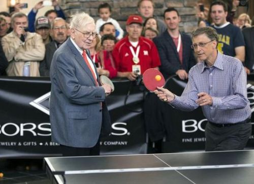 作為伯克希爾哈撒韋公司的董事,以及在商業、慈善等方面都有諸多共識的多年老友,蓋茨每年都會參加哈撒韋的股東大會。股東大會有一個“固定節目”——兩人的乒乓球比賽。5月2日,比爾·蓋茨再次捧場巴菲特在其家鄉奧馬哈召開的伯克希爾哈薩克股東大會。會后,美國當地時間5月12日,比爾·蓋茨在其個人網站發表題為《投資你的人生:巴菲特50年的智慧結晶》的文章。文中展示了這些年來其最喜歡的巴菲特與他的合影照片,并提到了他倆的乒乓對決以及兩年前他寫的題為《我從巴菲特身上學到的三件事》的文章。