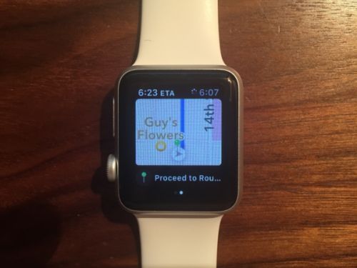 當(dāng)你從地圖應(yīng)用上獲取了行駛方向數(shù)據(jù),此時如果點擊下手腕,雖然手表發(fā)出的導(dǎo)航語音音量可能不會太高,但是足夠能讓你明白是否需要在下個路口轉(zhuǎn)彎了。這比從手機中獲得語音導(dǎo)航命令的效果會更好,但有個小缺陷是,你無法從手表里面聽到語音導(dǎo)航。