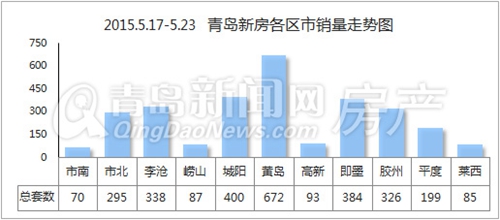 從各區域新房成交情況來看,上周黃島區依舊坐穩冠軍寶座,保持青島樓市“房子賣得最好的片區”稱號,據統計上周黃島區新房成交672套。緊隨其后的是近來表現不錯的城陽區,銷量雖然遠不及黃島,但上周也成交新房400套。而第三名被即墨市奪得,上周共銷售新房384套,近郊片區再度稱雄青島新房熱銷片區三甲。