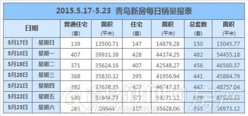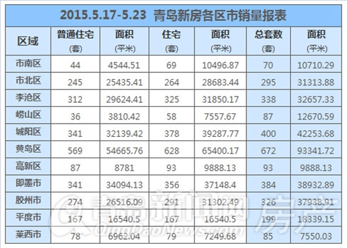 【青島新聞網房產訊】“紅五”第三周,新房市場依舊是“漲聲不斷”。根據統計,2015年5月17日-2015年5月23日青島市新房共成交2949套,總成交面積335596.6㎡,環比前一周上漲了約12%;其中新建住宅成交2708套,成交面積285405.29㎡,環比前一周上漲約9.5%。這是繼前一周新房市場高漲之后的再度攀升,雖然并未出現大熱局面,但成交量一直以來的昂揚向上讓不少人對當下青島樓市充滿信心。