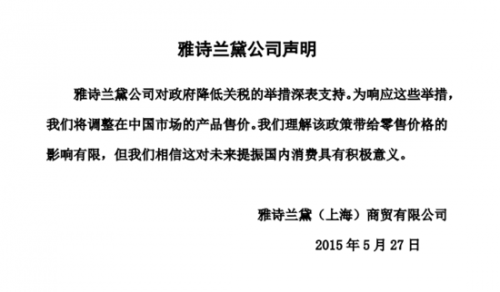 雅詩蘭黛聲明