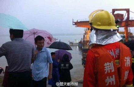 6月1日約21時(shí)28分,從南京駛往重慶的“東方之星”客船在長(zhǎng)江中游湖北監(jiān)利水域沉沒(méi)。初步了解船上載有內(nèi)賓397人、旅行社隨行工作人員5人、船員42人。失事船舶屬于重慶東方輪船公司。已被救起7人。船長(zhǎng)和輪機(jī)長(zhǎng)均反映船舶在航行途中突遇龍卷風(fēng)瞬間翻沉。因現(xiàn)場(chǎng)有大風(fēng)暴雨,搜救困難。