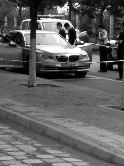 昨天,民警對寶馬車進行勘驗。讀者供圖