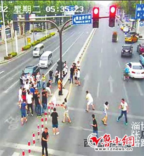 今天上午,有市民向本報3585000新聞熱線反映,前天早晨,在張店區華光路與淄博新世界商業街路口,有一伙年輕人在此鬧新郎,幾乎全裸的新郎被綁在信號燈桿上,任由同行的人“虐待”。