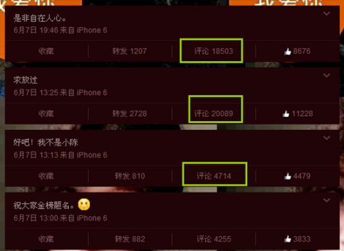 沒想到,一封書信讓眾多高三生“氣急敗壞”。考試結束沒多久,小陳明華被人肉出原型是微博用戶@愛心菇娘。其微博隨后被刷屏,不到半小時發了3條微博,先解釋“我不是小陳”,但考生并不買賬,繼續吐槽著“練了3年的議論文,就因為你舉報你爸要寫信”,小編從4000多條評論中隨手摘幾條: