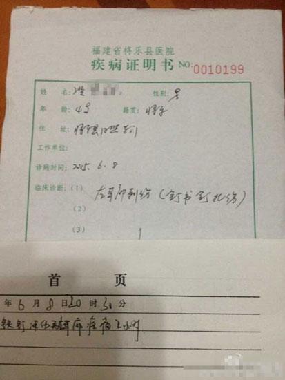 隨后,孩子被送往醫(yī)院處理傷口。而據(jù)該網(wǎng)友上傳的醫(yī)院診斷書顯示,幼童“左耳廓見鐵釘刺傷傷口”,臨床診斷為“左耳廓刺傷(釘書釘扎傷)”。