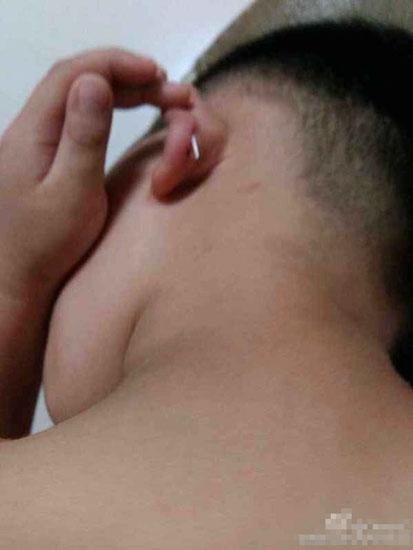 網(wǎng)友“CKevin”今早發(fā)帖稱,4歲的孩子放學回家時并未發(fā)現(xiàn)異常,但在洗澡時孩子大哭不止,直喊耳朵疼。家長這才發(fā)現(xiàn)孩子耳廓上有一枚訂書釘,經(jīng)過詢問,孩子哭訴“午休時被老師用訂書機訂了”。