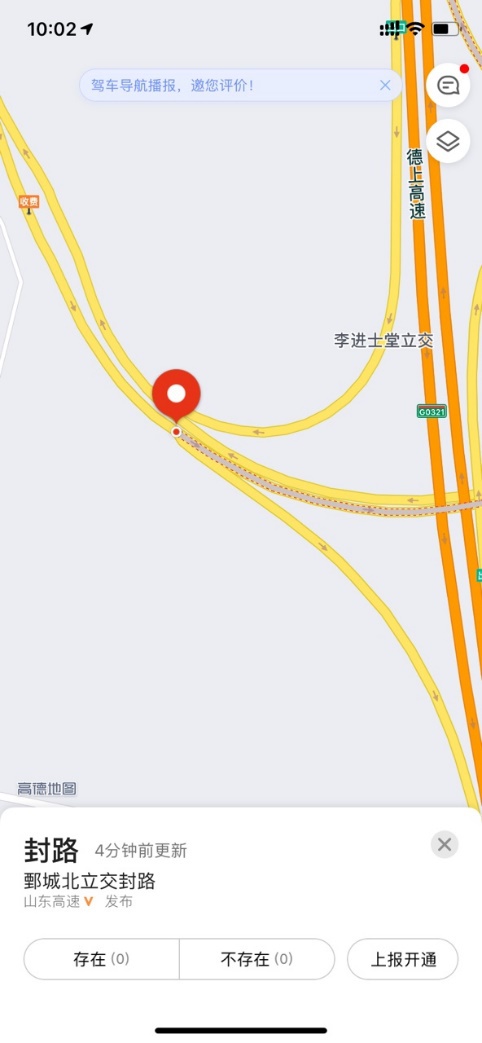 針對這一出行難題,山東高速信息工程有限公司聯合高德地圖以物聯網的方式取代以往人工報送機制,將顯示收費站開通狀態的雨棚燈“燈態上網”實時讀取,并通過高德地圖將狀態信息向社會公眾秒級發布。當用戶使用高德地圖時,如規劃線路途經“封閉區域”便可收到語音提示及事件信息提醒,并且封路信息可精確到具體車道。