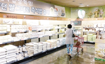 圖為顧客在韓國超市里挑選大米。本報記者 楊 明攝