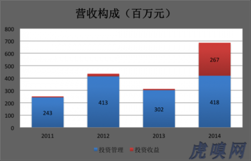 2014年末,在管項(xiàng)目增至193個(gè),公允值及初始投資分別為331億和148.7億(年報(bào)未披露項(xiàng)目分布情況)。