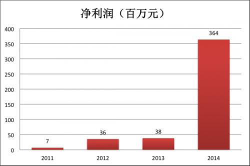 營收及凈利潤:2014年凈利暴漲8倍