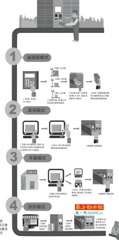 南都記者調查采訪中留意到,廣州地區目前快遞柜規模最大的是速遞易,其對所有快遞公司開放,快件可免費存放24小時,每超過一天收件人要另付1元費用。“目前,我們在全國72個城市有接近3萬個網點規模,幾乎所有電商、快遞企業都在使用。預計今年底網點規模將達到5萬個。”速遞易相關人士昨回復南都記者時透露。