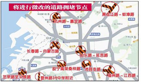 延安三路—香港中路路口交通組織優化微改工程于上月放開路口交通,表明我市首個交通擁堵節點道路微改工程完工,市城鄉建設委市政處日前再次公告招標,對其他11處道路擁堵節點進行微改,這意味著今年我市交通微改工程計劃已全部落實,該工程預計7月份陸續開工,今年11月底前全部完工。