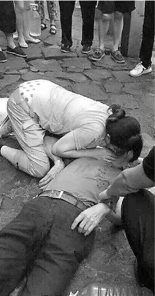 她趕緊蹲下,開始給老人做心肺復蘇。一邊給老人按壓胸口,一邊嘴對嘴給老人吹氣。