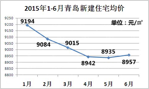 根據(jù)百城房?jī)r(jià)指數(shù)公布的2015年1-6月新建住宅均價(jià)來看,1-5月島城房?jī)r(jià)出現(xiàn)了持續(xù)下跌,其中前三個(gè)月新建住宅均價(jià)跌幅最大,在4月份“跌破”“9000元”大關(guān)后,樓市利好政策便蜂擁而至,房?jī)r(jià)終于從5月開始了“止跌趨穩(wěn)”,最終在6月迎來了年內(nèi)的首次上漲,最終新建住宅均價(jià)定格在8957元/㎡。