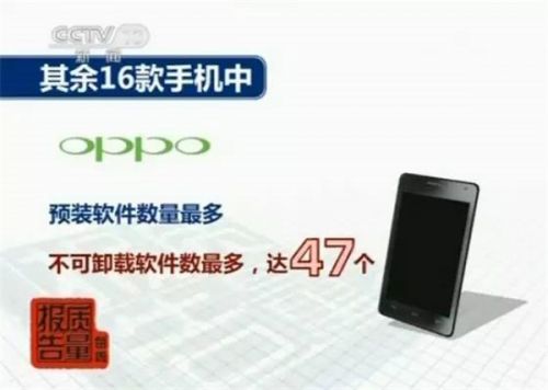 實驗結果發現,上海市消保委送檢的20款手機中,除一款無法開機外,其余19款手機,都預裝了不少軟件,其中最少的27個,最多的達71個,這款預裝了71個軟件的手機標稱為廣東歐珀移動通信有限公司生產的OPPO牌。上海市消保委副秘書長寧海說:“它的視頻軟件就多達4個,譬如搜狐、愛奇藝等。”