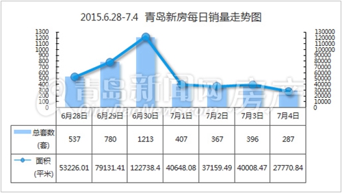 【青島新聞網房產訊】伴隨著上半年新房成交量“爆棚”,下半年一開篇,首周新房成交量再度迎來“暴漲”。根據統計,2015年6月28日-2015年7月4日青島市新房共成交3987套,總成交面積400682.75㎡,較前一周環比暴漲約35%;其中新建住宅成交3632套,成交面積374794.36㎡,與前一周相比同樣上漲約35%。可見青島樓市再度發力,下半年將有更多驚喜。