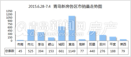 從各區域新房成交情況來看,黃島區上周以新房成交1149套的優異成績奪得“壓倒性”的勝利。緊隨其后的城陽區也當仁不讓,上周新房成交661套穩居第二位。多日來無緣“三甲”的市北區上周大放異彩,成交525套新房成為全市新房成交量第三名,再度打破近郊板塊對樓市的全壟斷。