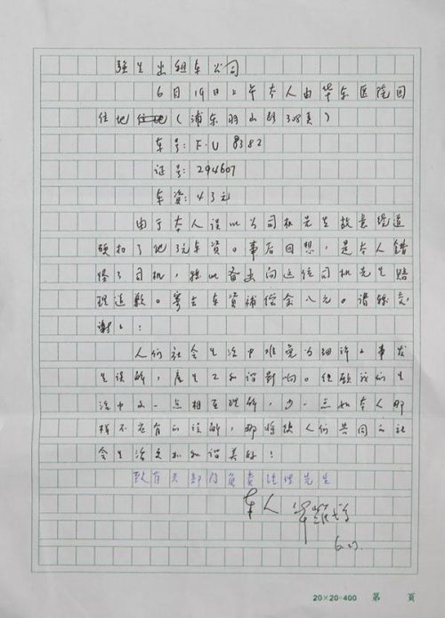 “由于本人誤以為司機先生故意繞道,硬扣了他3元車資。事后回想,是本人錯怪了司機,特此備文向這位司機先生賠禮道歉,寄出車資補償金8元,請轉交,謝謝!人們社會生活中難免為細碎的事發(fā)生誤解,產(chǎn)生不好的影響。但愿我們生活中多一點相互理解,少一點如本人那樣不應有的誤解,讓人們共同的社會生活更加和諧美好!”華老在信中寫道,并根據(jù)發(fā)票信息,附上了車號、證號和車資。
