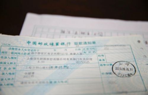 老人華耀增給出租車公司的匯款單。澎湃新聞記者 楊博 圖