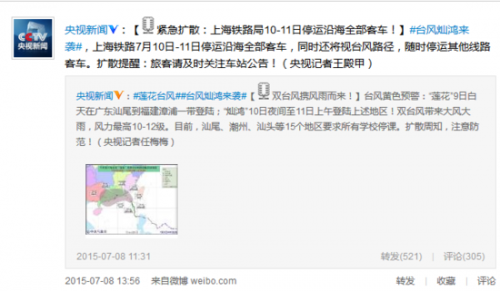 【緊急擴(kuò)散:上海鐵路局10-11日停運(yùn)沿海全部客車!】#臺(tái)風(fēng)燦鴻來(lái)襲#,上海鐵路7月10日-11日停運(yùn)沿海全部客車,同時(shí)還將視臺(tái)風(fēng)路徑,隨時(shí)停運(yùn)其他線路客車。擴(kuò)散提醒:旅客請(qǐng)及時(shí)關(guān)注車站公告!