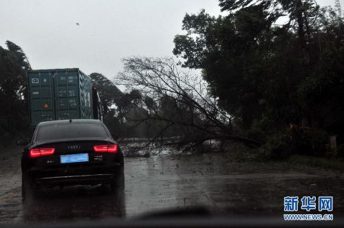 7月9日,臺風“蓮花”登陸地廣東省陸豐市一條公路旁的樹木被臺風吹倒。當日12時15分,今年第10號臺風“蓮花”在廣東省陸豐市甲東鎮沿海地區登陸。記者從陸豐市三防辦了解到,在臺風“蓮花”正面襲擊下,截至9日17時,陸豐23個鎮(場、區)受災人口達71萬人,目前尚未接到因災出現人員傷亡情況的報告。新華社發(黃賢嘉 攝)