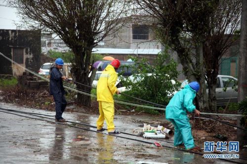 7月9日,臺風“蓮花”登陸地廣東省陸豐市搶修人員在甲東接力拉線。當日12時15分,今年第10號臺風“蓮花”在廣東省陸豐市甲東鎮沿海地區登陸。記者從陸豐市三防辦了解到,在臺風“蓮花”正面襲擊下,截至9日17時,陸豐23個鎮(場、區)受災人口達71萬人,目前尚未接到因災出現人員傷亡情況的報告。新華社發(謝坂升 攝)