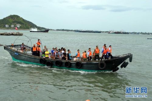 7月9日,汕尾邊防支隊官兵正在汕尾港將漁民轉移至安全地區。當日12時15分,今年第10號臺風“蓮花”在廣東省陸豐市甲東鎮沿海地區登陸。記者從陸豐市三防辦了解到,在臺風“蓮花”正面襲擊下,截至9日17時,陸豐23個鎮(場、區)受災人口達71萬人,目前尚未接到因災出現人員傷亡情況的報告。新華社發(陳奕武 攝)