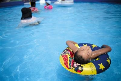 北京亦莊,市民在水上游樂園戲水。昨日是入伏第一天,北京的氣溫創(chuàng)下今年新高。新京報(bào)記者 王嘉寧 攝