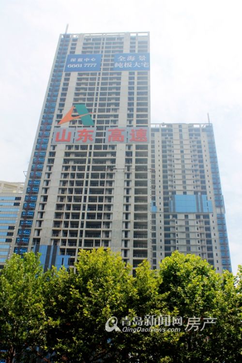 近日,當記者再次來到深藍中心走訪時,發現該地塊的塔樓已經全都封頂了,“山東高速”“深藍中心”的大牌子懸掛在半空中,十分顯眼,藍色的玻璃幕墻正在一點點的安裝過程中。盡管地塊所在的東海路從來不缺摩天大廈,但是深藍中心兩棟超高層在“鋼筋水泥森林”之中也十分搶眼。據悉目前“鉆石地角兒”孕育出的綠城深藍中心均價高達70000元/㎡,戶型面積在260-460㎡,當年的“鉆石大水坑”如今已經華麗變身為青島最貴的“鉆石新盤”。