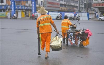 積水加上零星的垃圾,昨日鄧賢國掃完一個單邊足足花了半個小時。他說,沒有積水的時候,路面上最多的垃圾就是煙頭,“這東西個頭小,不容易發現,而且很分散,所以掃起來很麻煩。”