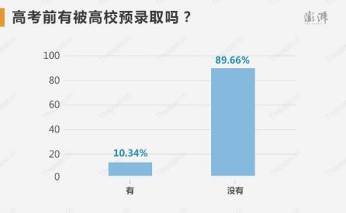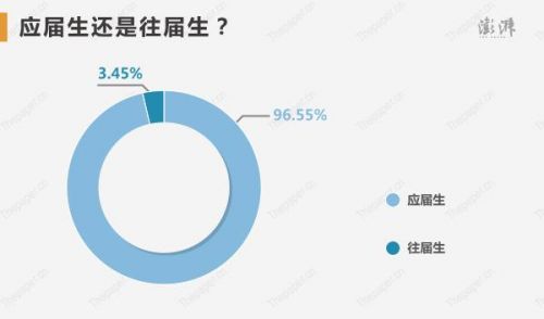 應屆生還是往屆生的比例中,應屆生高達96.55%,可見復讀博名校的學生越來越少。高考前有被高校預錄取的僅為10.34%。