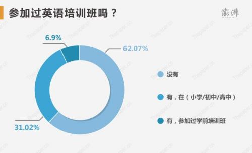 現在奧數熱火朝天,高考狀元們參加過奧數班嗎?選擇參加的占51.72%,沒有參加的占48.28%。相比奧數,高達62.07%的人選擇沒有參加過英語培訓班。