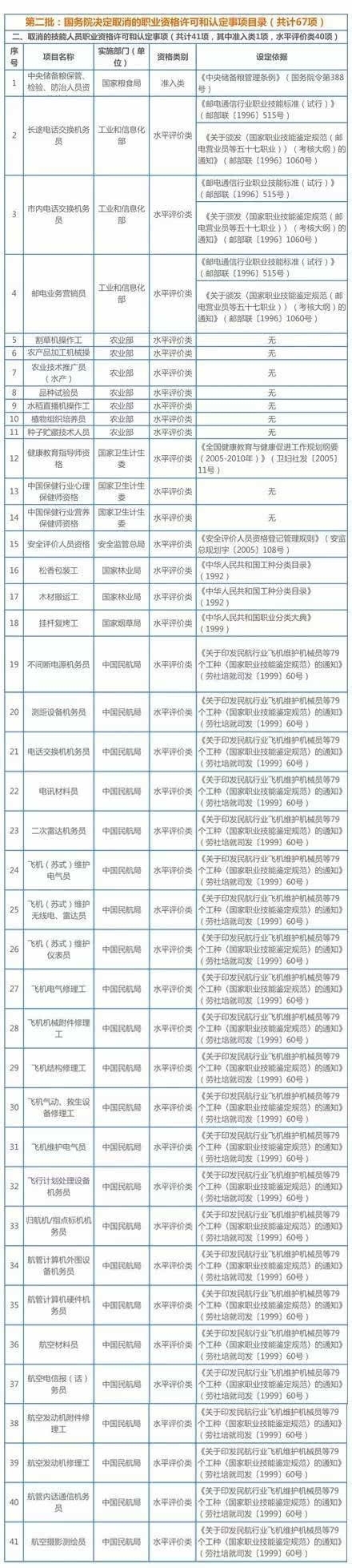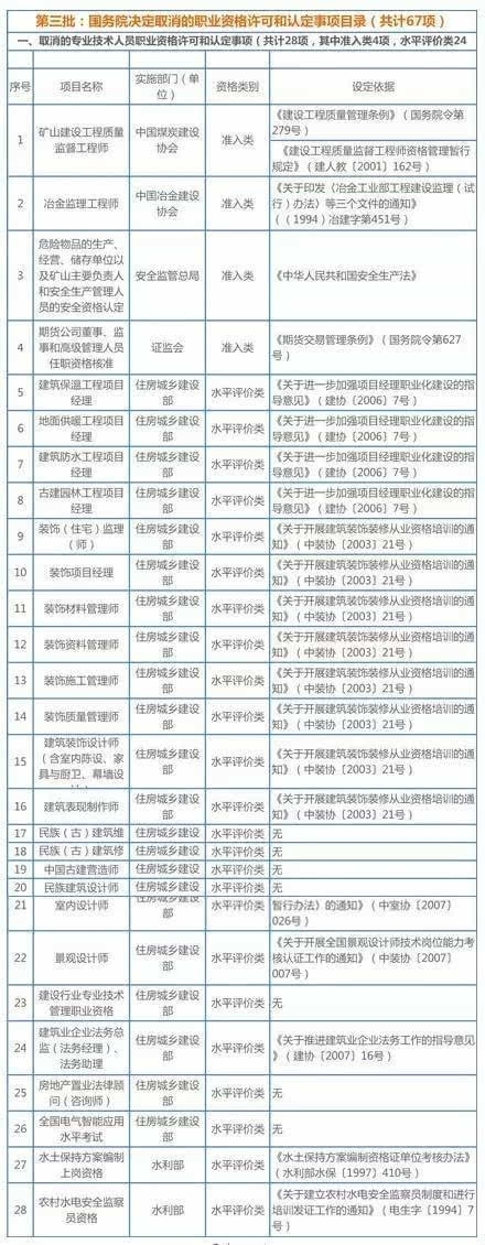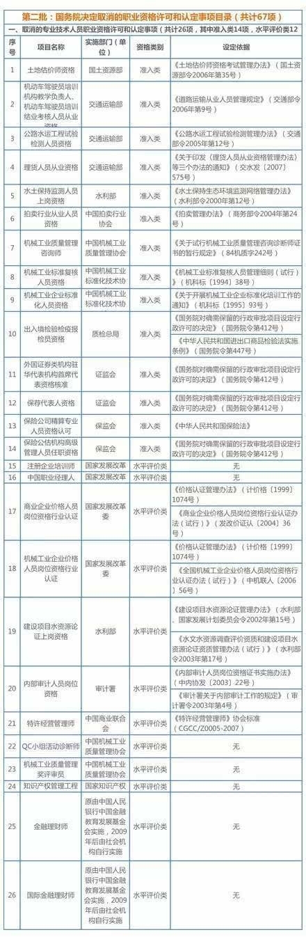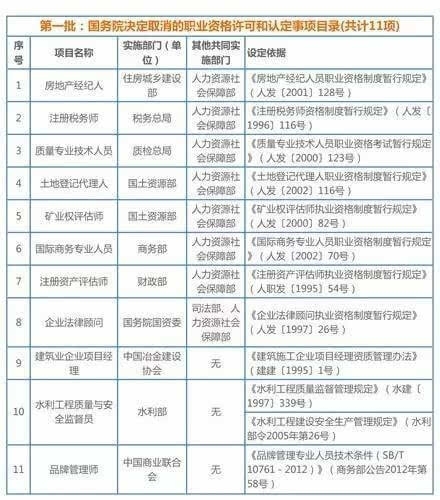 國務(wù)院已取消職業(yè)資格清單