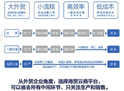 海貿云商平臺的創(chuàng)新點,就在于集成的所有資源,并通過技術實現(xiàn)了線上透明,對所有平臺上的中小微進出口企業(yè)開放。從這個角度上,中小微進出口企業(yè)只需要關注生產和銷售環(huán)節(jié),而其他的部分都可以借力平臺完成,讓整個外貿流程更加便捷、高效。