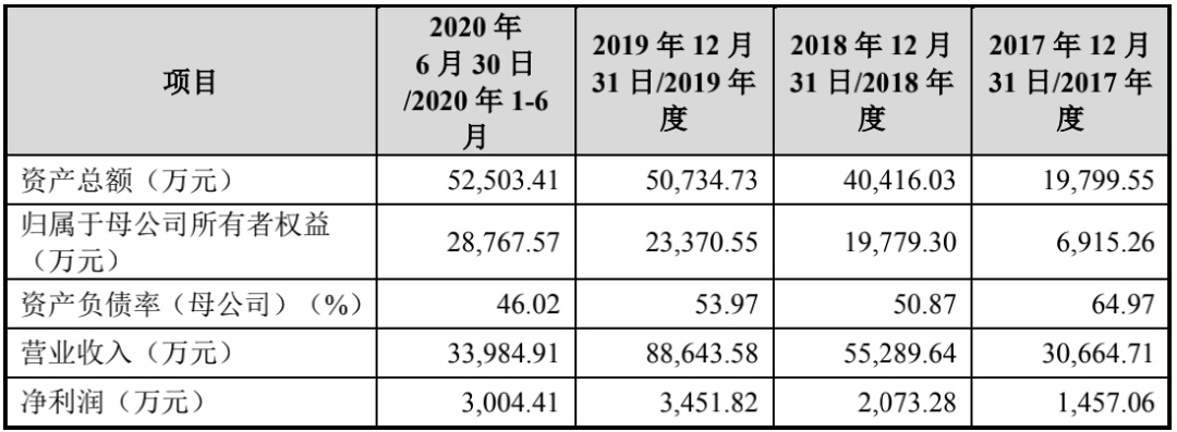 財務數據顯示,2017年-2019年及2020年上半年,易來智能實現營業收入3.07億元、5.53億元、8.86億元、3.4億元,2019年同比增長了60.33%;對應凈利潤分別為1457.06萬元、2073.28萬元、3451.82萬元、3004.41萬元。