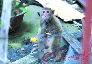 一部《西游記之大圣歸來》讓美猴王榮耀歸來,再次成為人們心中的英雄。一個月前,在順德大良瀛洲小區的舊居民樓里,也來了這樣一只“明星級”猴子,旁若無人地穿梭在居民樓之間。而更神奇的是,這只猴子疑似還養著一只小貓咪,經常抱著小貓咪游玩,引人附近住戶圍觀。“大圣”的“歸來”,讓街坊們的生活從此被改變。對于這只猴子,街坊們“又愛又恨”,一方面覺得有趣,時常逗逗它,給它喂食;但猴子野性大,家里有孩子的要時時看著,窗戶也要常關著,就怕被猴子盜竊或傷人、嚇到孩子。防不勝防的是,有街坊剛買的水果被猴子盜走,樓頂上給貓狗吃的飯菜也被搶吃。一開始猴子還怕貓狗,后來日子長了,就誰也不怕了。它懷里抱的小貓,也是最近從貓媽媽那里搶來的“寵物”,貓媽媽和它打了好幾架,都沒能搶回自己的孩子。常見這猴子的街坊說,剛逃出時的猴子還是很肥的,可是一個多月后,因吃住都不好,已瘦了很多,被它抓去的小貓也很虛弱。街坊們很害怕猴子會惹出大事,也擔心它長期這樣會被傷害,所以一直期盼著有關部門來人把它抓住,送回適合它生長的環境。