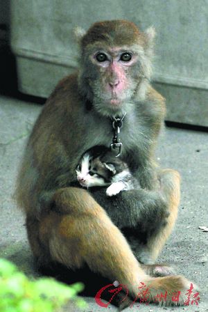 猴子懷抱小貓