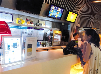 7月26日,王府井新東安百老匯影城,觀眾在影城商店購買飲料。新京報記者 薛珺 攝