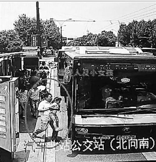 (嫌疑人把小花抱上公交車。監控截圖由警方提供。)
