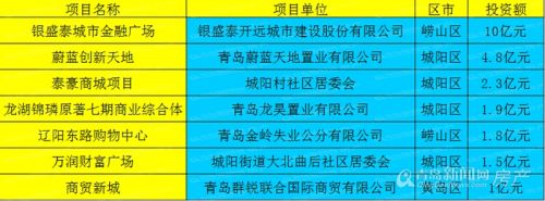 另外在48個億元級項目中,各類商業(yè)配套項目占比約為14.5%,這些項目建成后不僅可以提高周邊居民生活質(zhì)量,更可以改造青島市的商業(yè)氛圍,其中廣為市民關注的項目就有遼陽東路購物中心項目、蔚藍創(chuàng)新天地、泰豪商城項目、龍湖錦璘原著七期商業(yè)綜合體、萬潤財富廣場、商貿(mào)新城等。