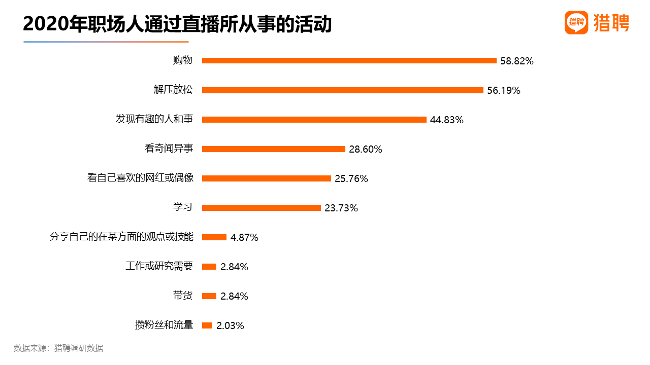 直播已成為職場人購物、解壓的主流渠道
