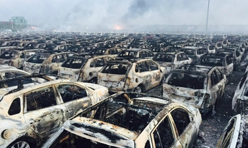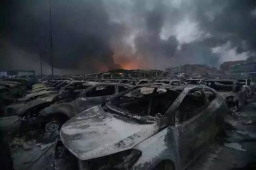 根據當前的媒體報道,離爆炸中心400米左右就是進口汽車停車場。這個將近6個足球場大的停車場當時停滿了將近6000輛新車,其中六分之一被徹底燒毀。停車場一夜之間變成汽車墳場,按照車價估算經銷商或損失上億元。根據知情人士透露,這一停車場為天津港雷諾汽車倉儲場。