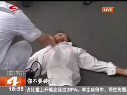 碰瓷男子倒地不起