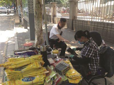 吳蘋年近五旬,“家里人有修鞋手藝,我學會后1987年開始在這里擦鞋補鞋,這一晃就過去28年了。后來我老公下崗,就跟我一起在鞋攤上謀生。”