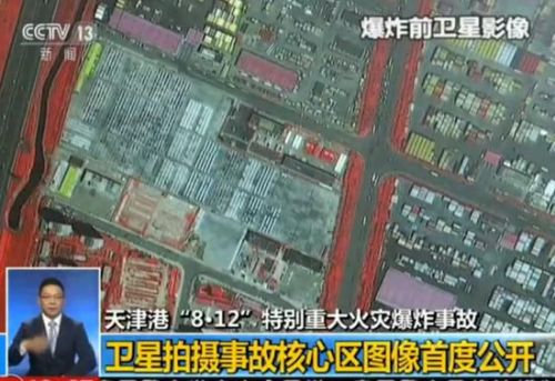 主持人:記者從航天科技集團獲悉,天津港8·12特別重大火災爆炸事故發生之后,多顆衛星對事故核心區域進行了成像,事故核心區在爆炸前后的影像對比圖也首度公開。